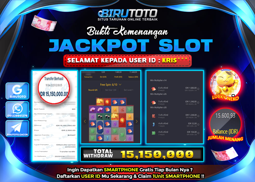 BIRUTOTO JACKPOT SLOT LUCKY NEKO Rp.15.150.000 LUNAS