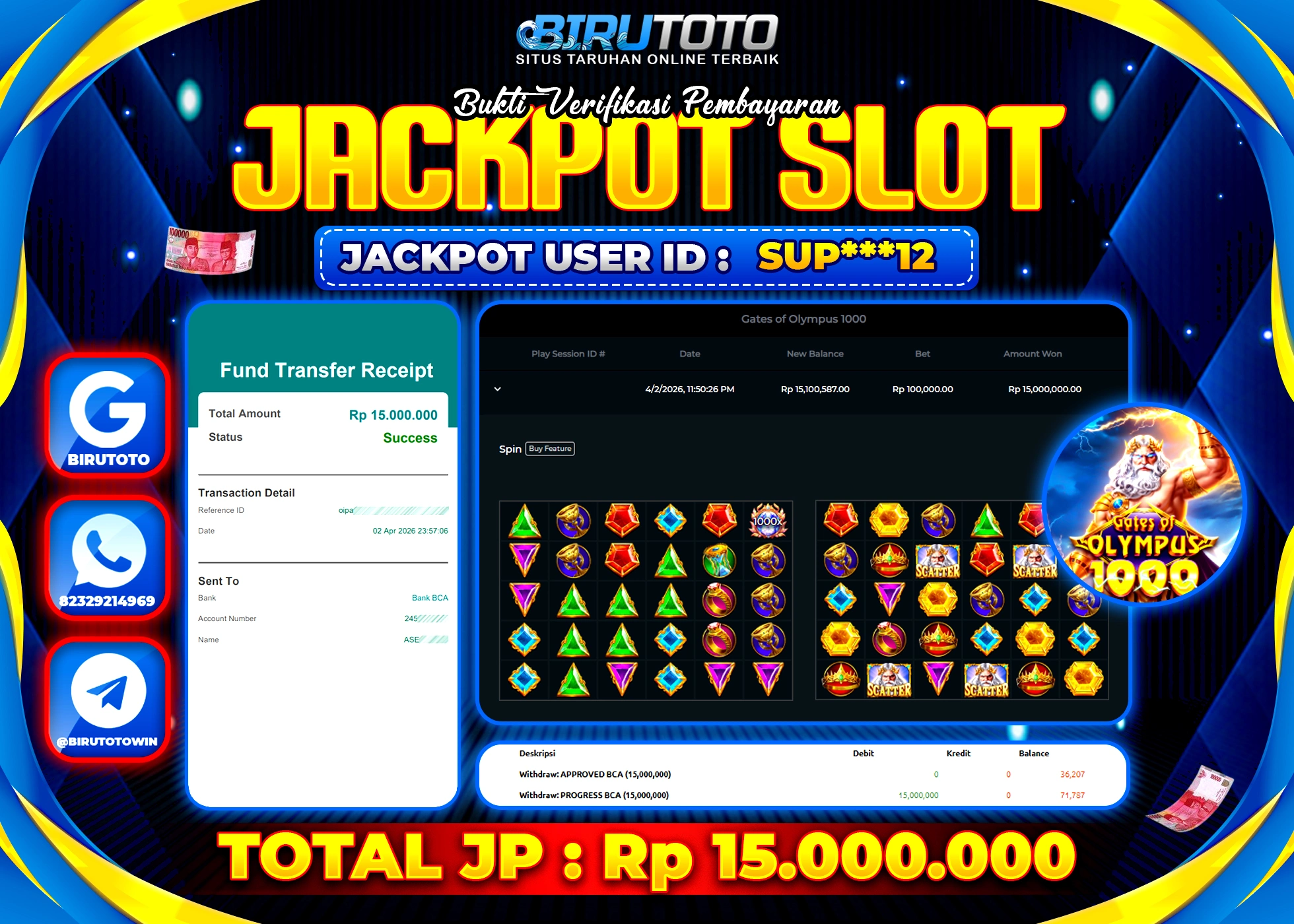 BIRUTOTO JACKPOT SLOT GATES OF OLYMPUS 1000 Rp.15.000.000 LUNAS
