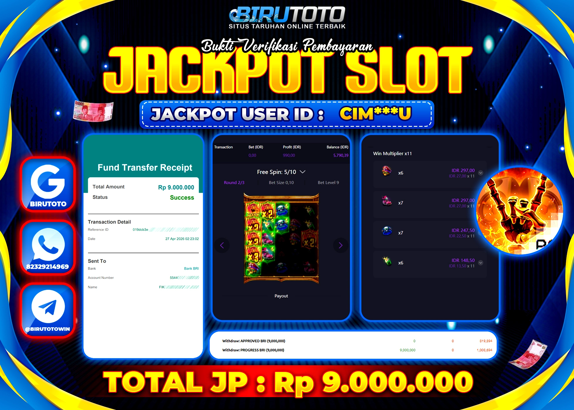 BIRUTOTO JACKPOT SLOT INFERNO MAYHEM Rp.9.000.000 LUNAS