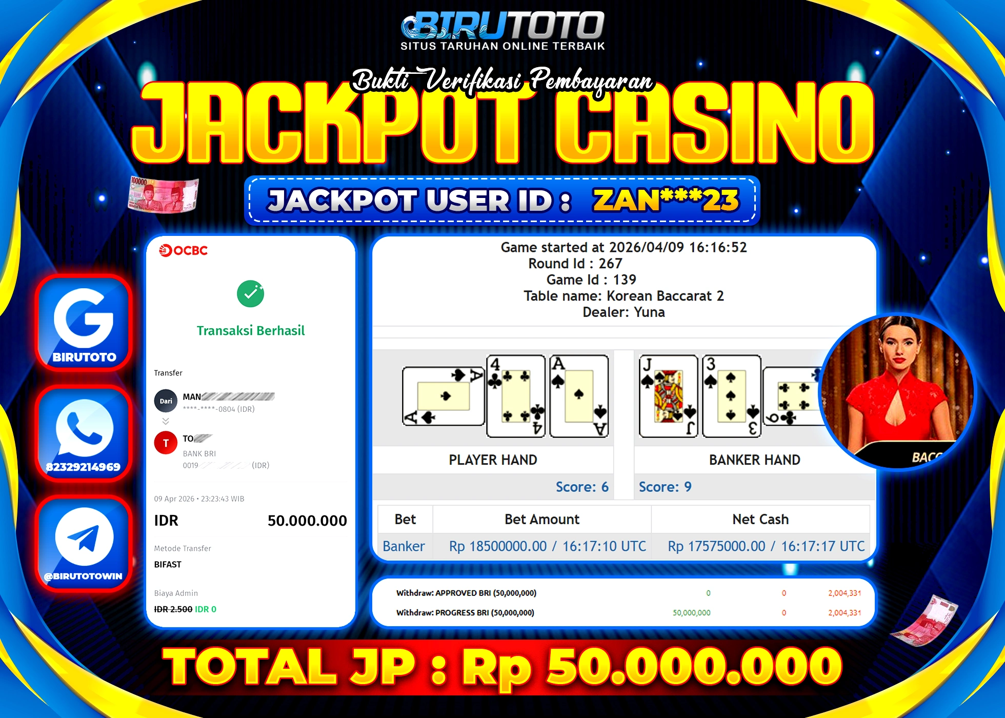 Selamat Kepada Member BIRUTOTO ZAN***23 Telah Jackpot Di LIVE CASINO SPEED BACCARAT