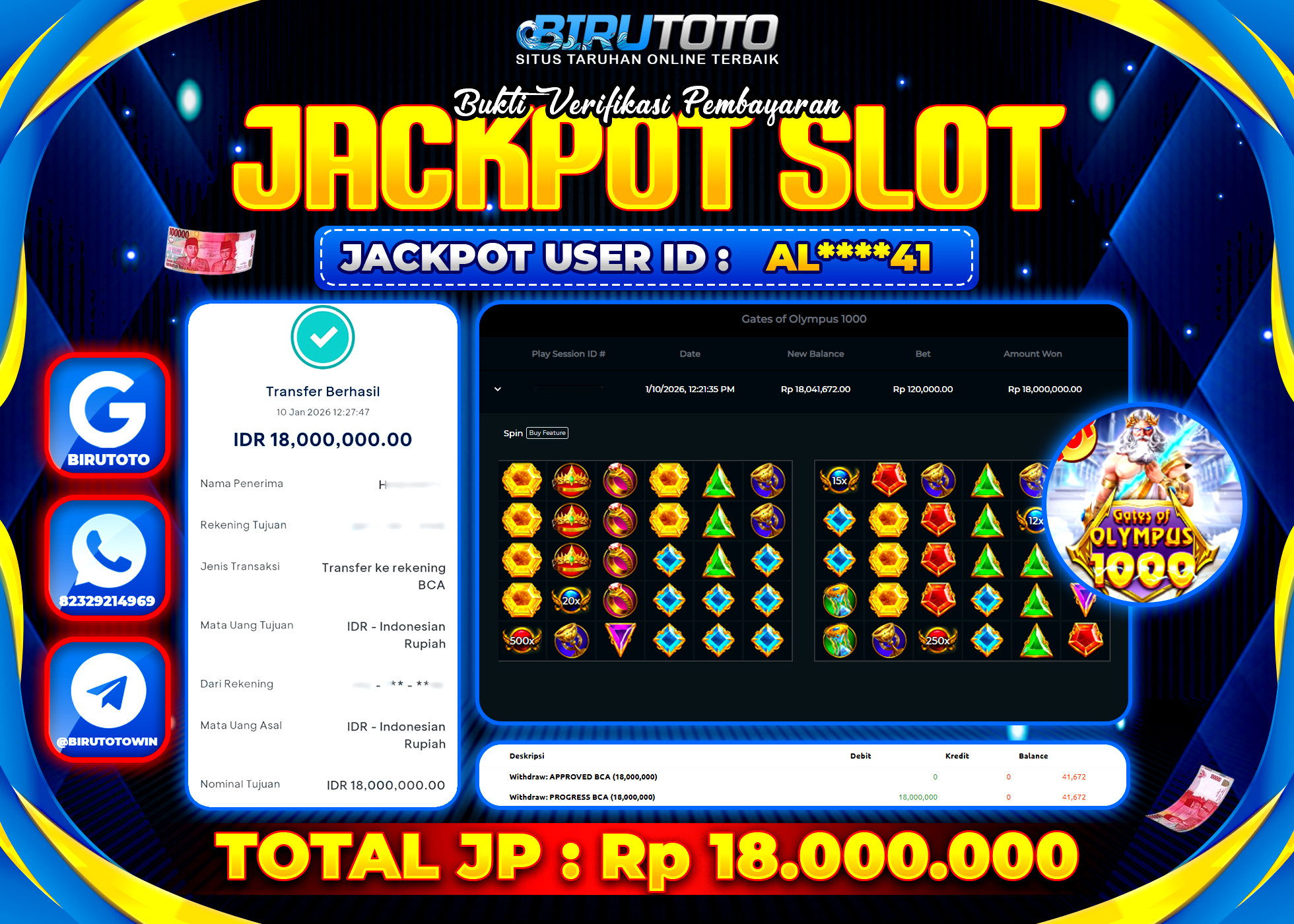 BIRUTOTO JACKPOT SLOT GATES OF OLYMPUS 1000 Rp.18.000.000 LUNAS