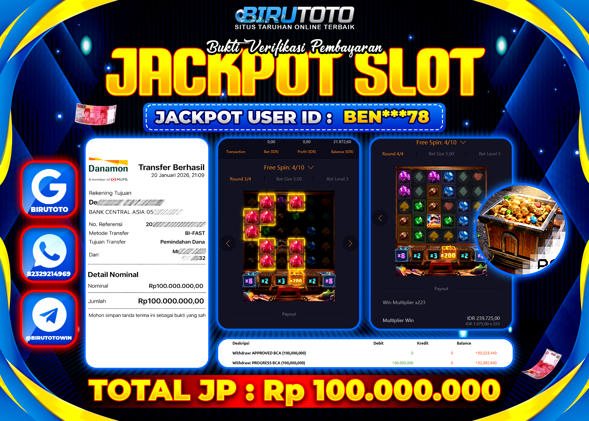 BIRUTOTO JACKPOT SLOT GEMSTONES GOLD Rp.100.000.000 LUNAS