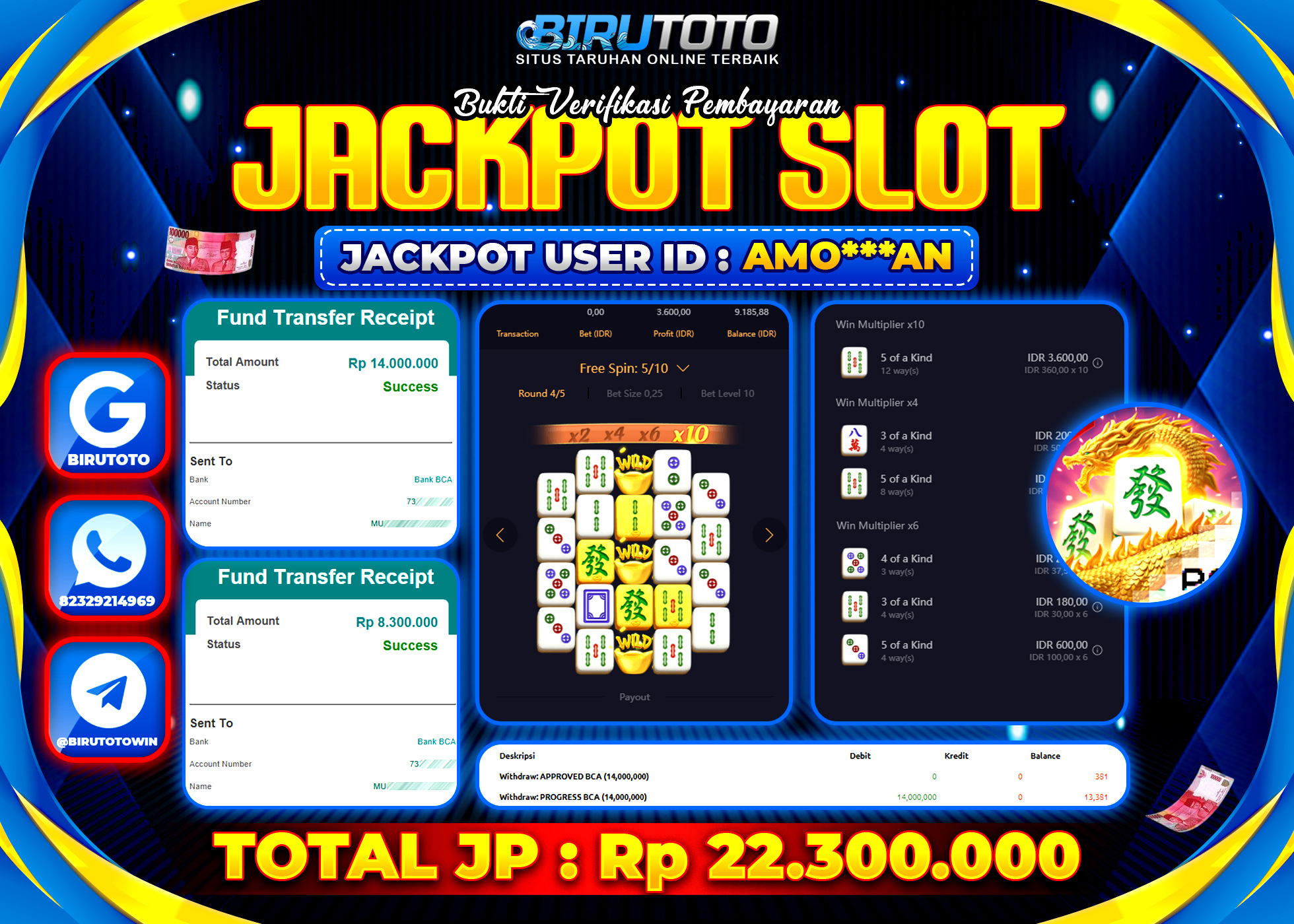 Selamat Kepada Member BIRUTOTO AMO***AN Telah Jackpot Di SLOT MAHJONG WAYS 2