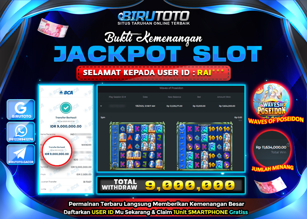 BIRUTOTO JACKPOT SLOT WAVES OF POSEIDON Rp.9.000.000 LUNAS